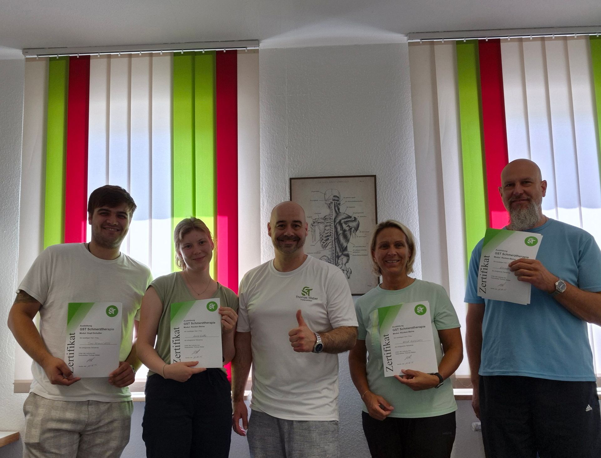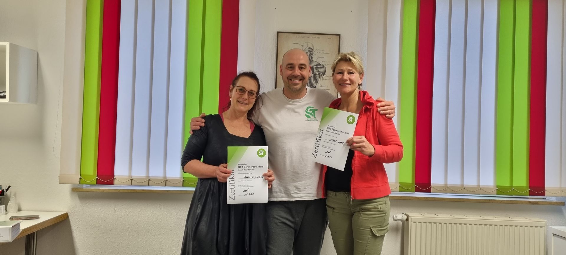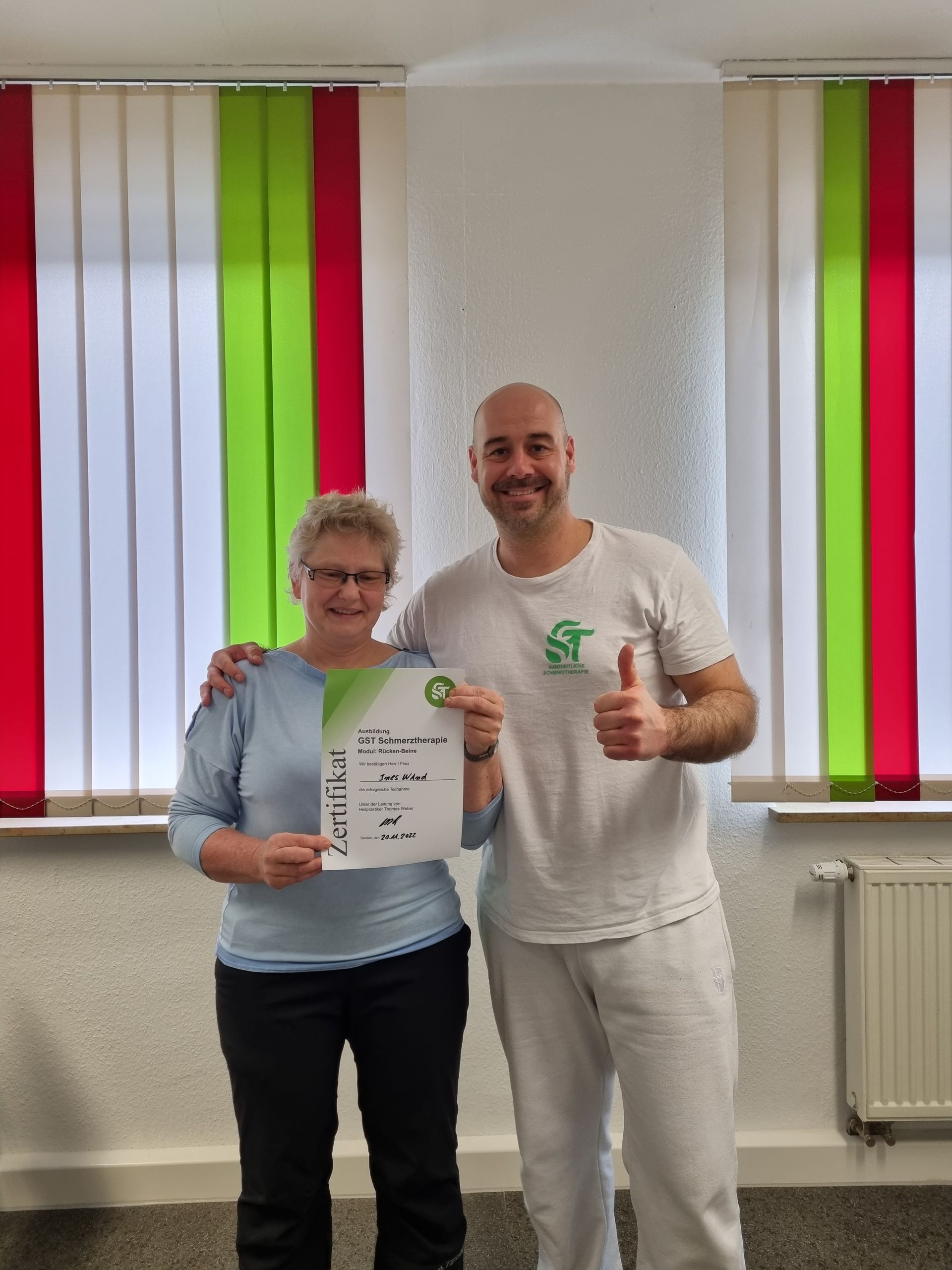 „Ich habe die Ausbildung GST Schmerztherapie online gemacht und war zur praktischen Prüfung bei Herrn Weber in Senden. Die Ausbildungsinhalte, sowohl online als auch im Ordner sind gut strukturiert, sodass ich die Faszienpressur - Punkte und Übungen nachvollziehen und sicher erlernen konnte. Kamen Fragen auf, konnte ich Herrn Weber jederzeit kontaktieren und er erklärte alles verständlich.