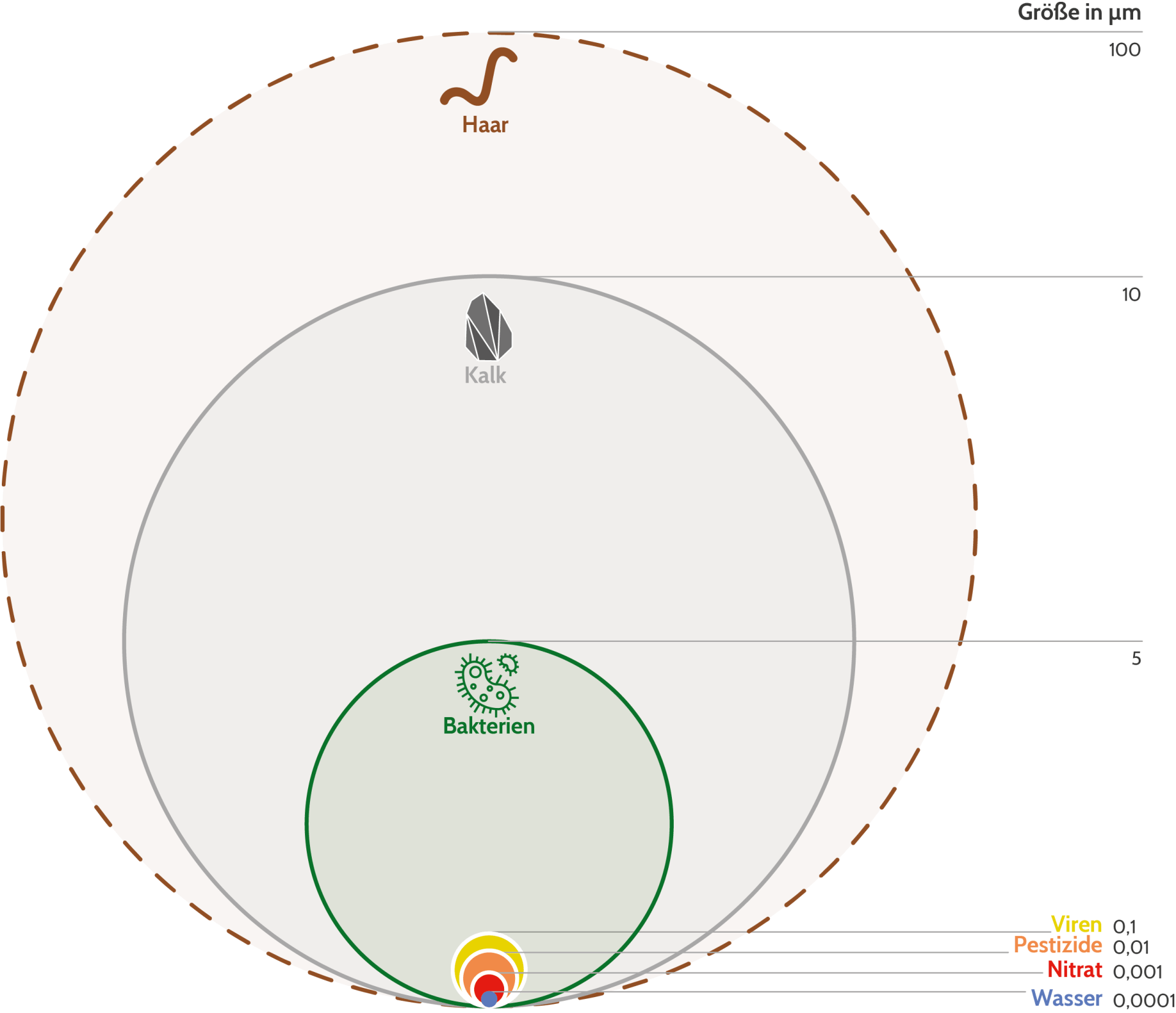 Chlor, Phosphate, Mangan, Silber, Natrium, Hormone,Medikamente, Bakterien, Viren, Metallionen, Parasiten, Schwermetalle, Mikroplastik, Nanopartikel, ...